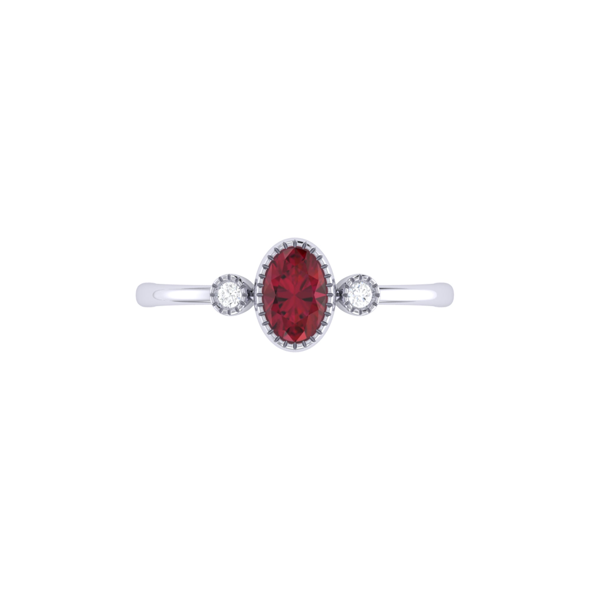 Oval Cut Ruby & Diamond Birthstone Ring In 14K White Gold