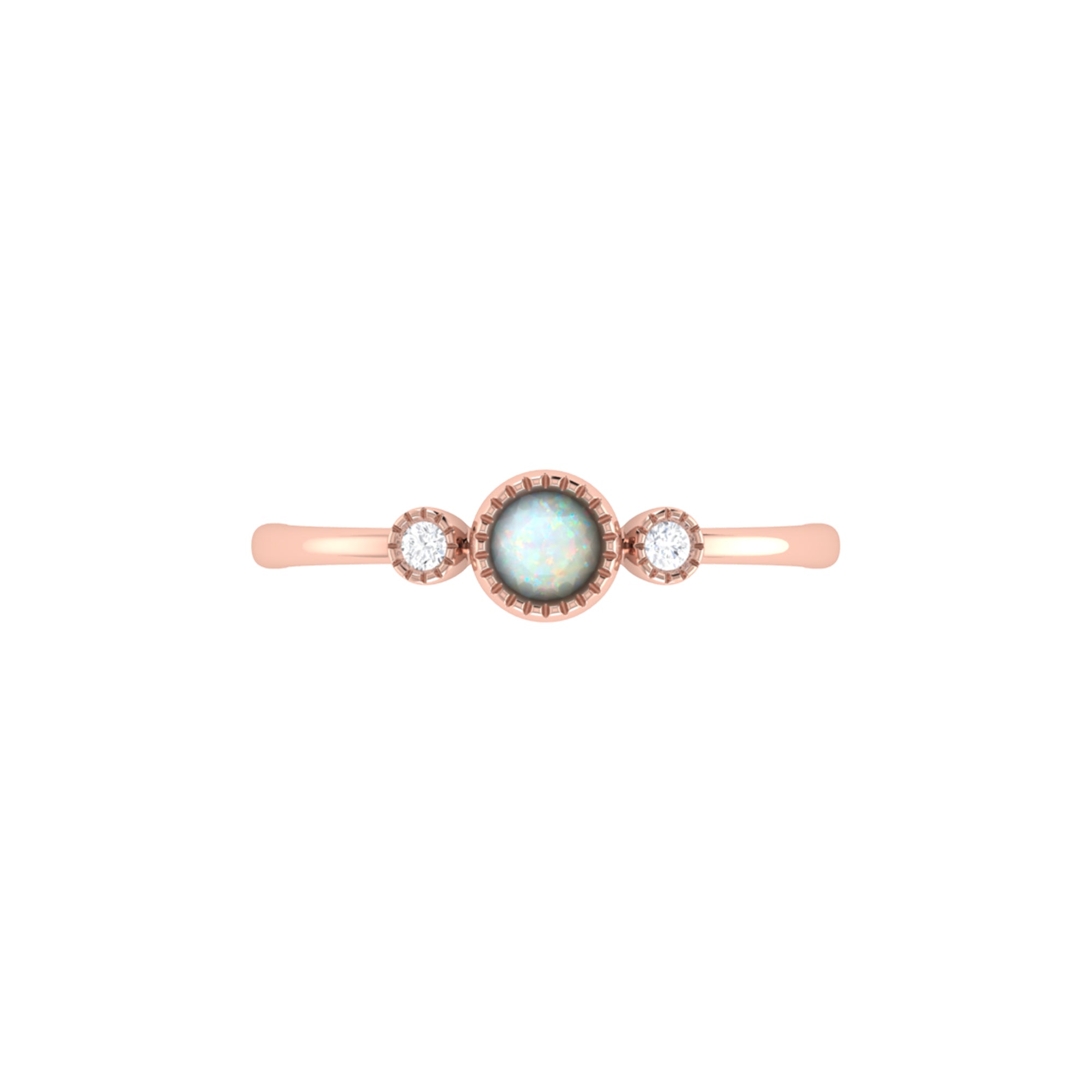 Round Cut Opal & Diamond Birthstone Ring In 14K Rose Gold