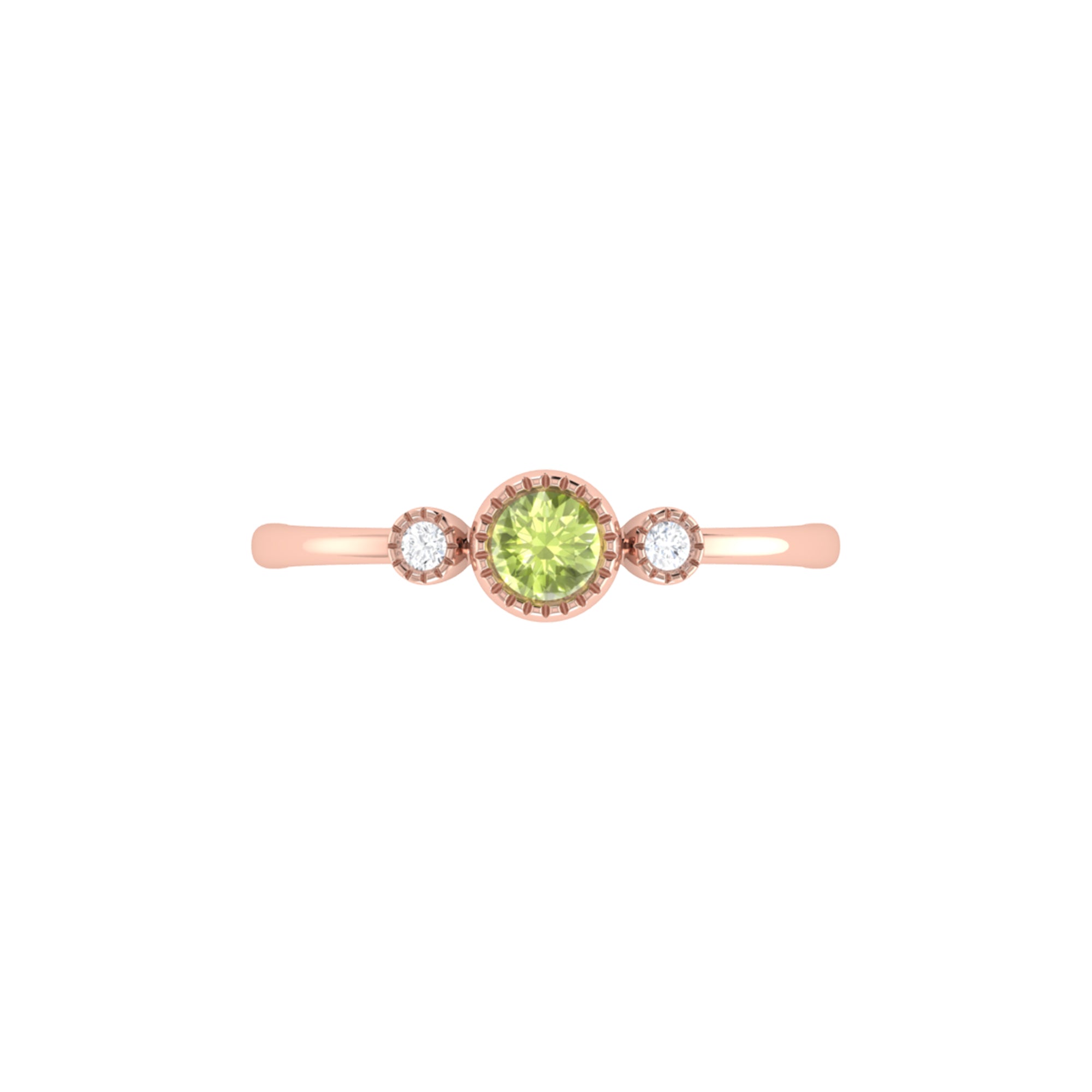 Round Cut Peridot & Diamond Birthstone Ring In 14K Rose Gold