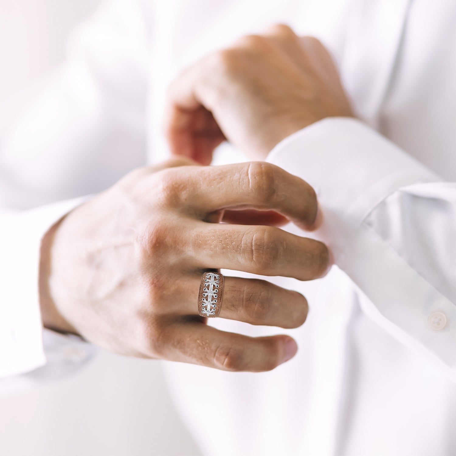 Our Touchdown American Football Diamond Band Men Ring features a bold and dynamic design. Crafted for the man who celebrates his love for football with a touch of refined sophistication.