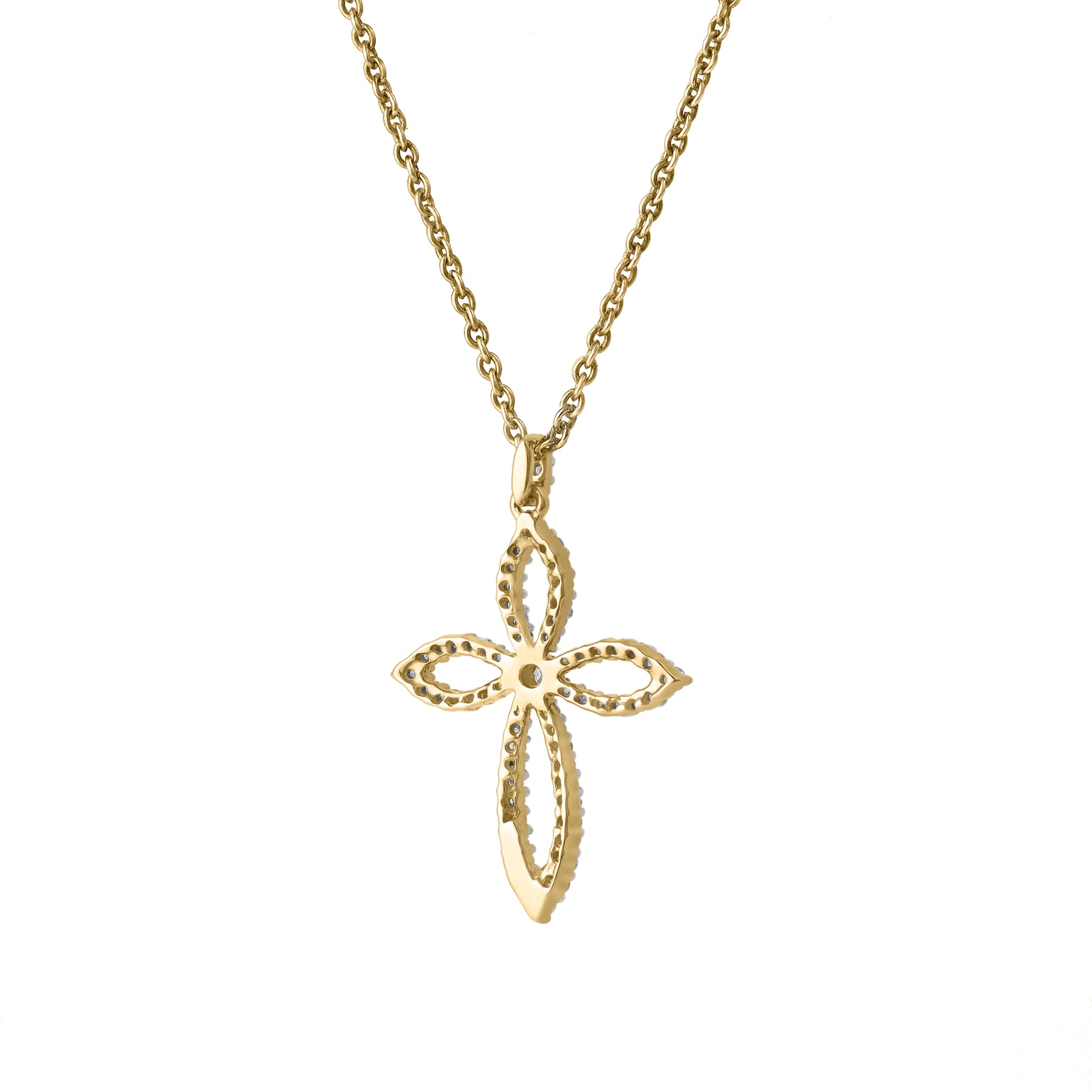 Delicate yet radiant, the Heaven’s Whisper pendant features 0.25 carats of natural diamonds gracefully set in luminous 10K yellow gold. The finely crafted cross design captures a quiet brilliance, symbolizing faith, hope, and divine grace in every shimmering detail.