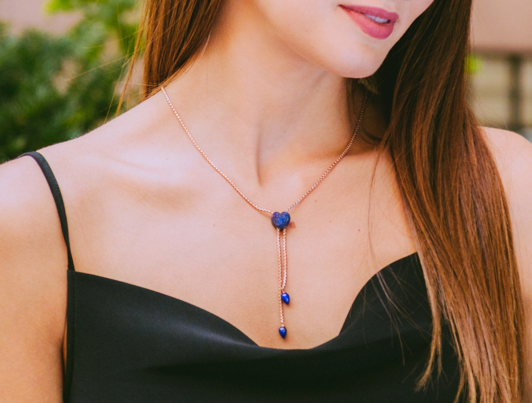 Luv Me Lapis Adjustable Heart Necklace in 14K Rose Gold Plated Sterling Silver