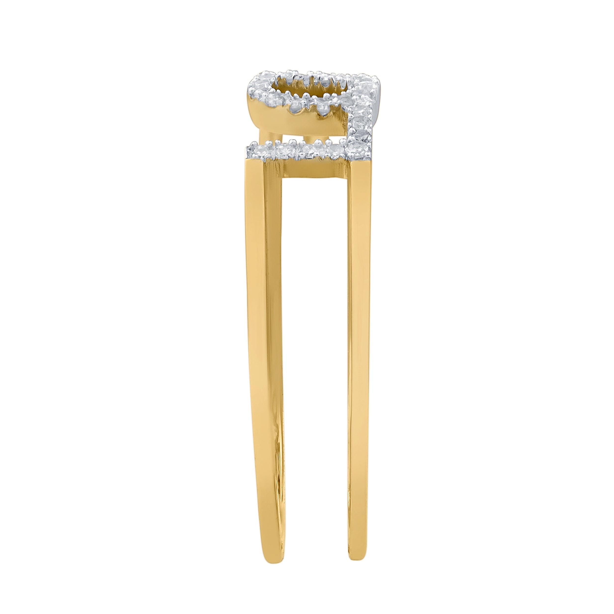 Romantic and radiant, the Amorra ring features 0.15 carats of natural diamonds set in warm 14K yellow gold. The elegant “LOVE” design sparkles with meaning, symbolizing affection, connection, and the timeless beauty of devotion.