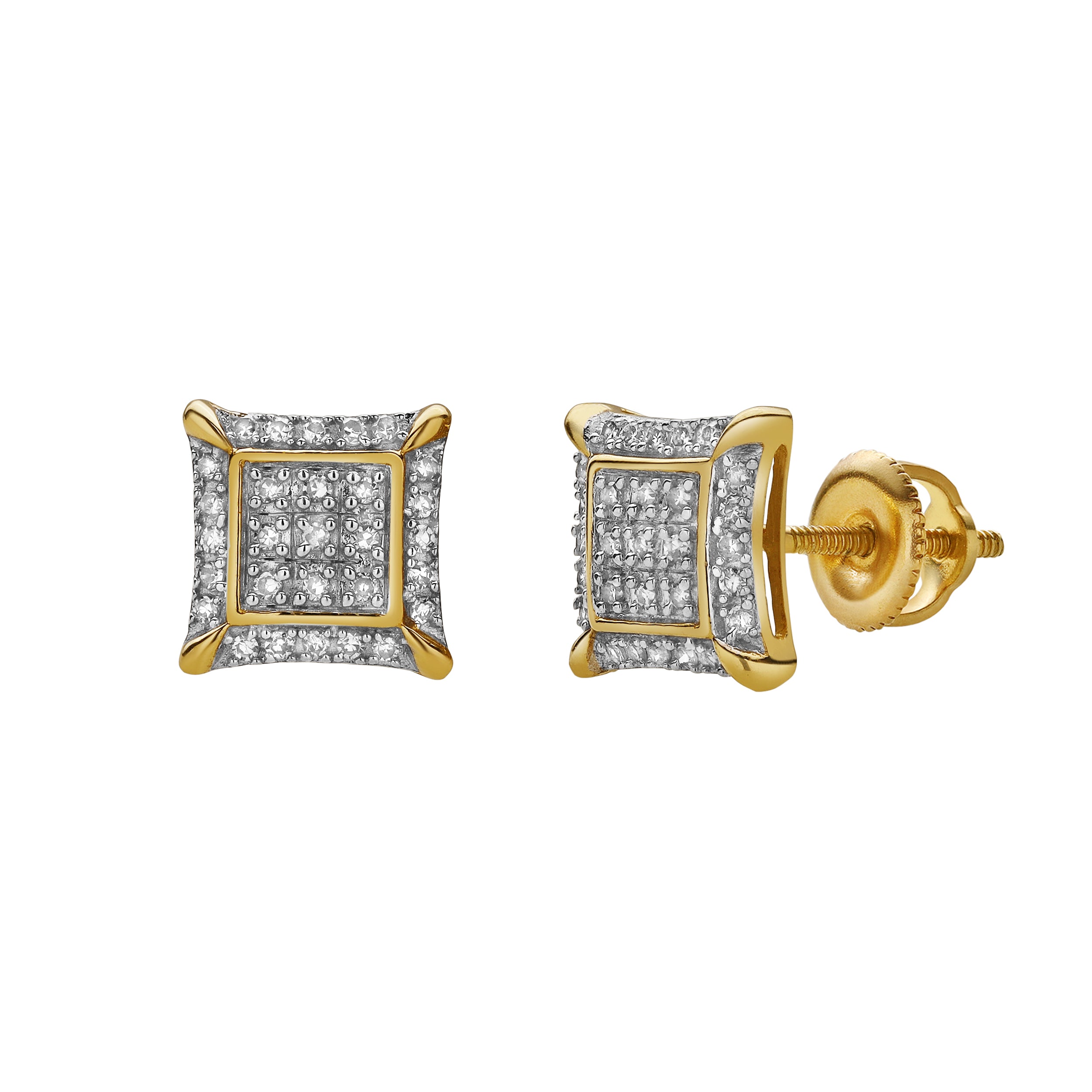 These gorgeous 0.14 carat diamond earrings feature a elegant cluster design meticulously set in 10K yellow gold with a screwback setting. Their elegant arrangement highlights the timeless brilliance of the diamonds.