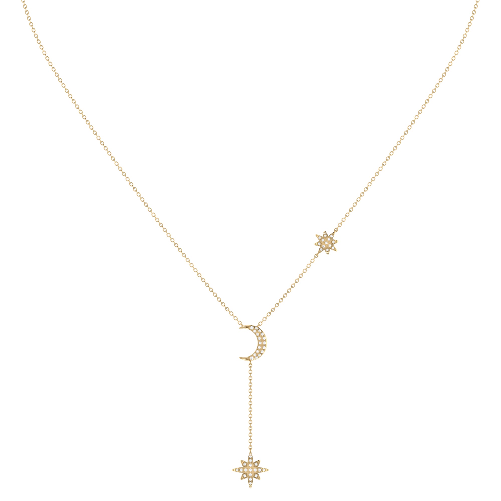 Crescent North Star Diamond Drop Necklace in 14K Gold Vermeil on Sterling Silver