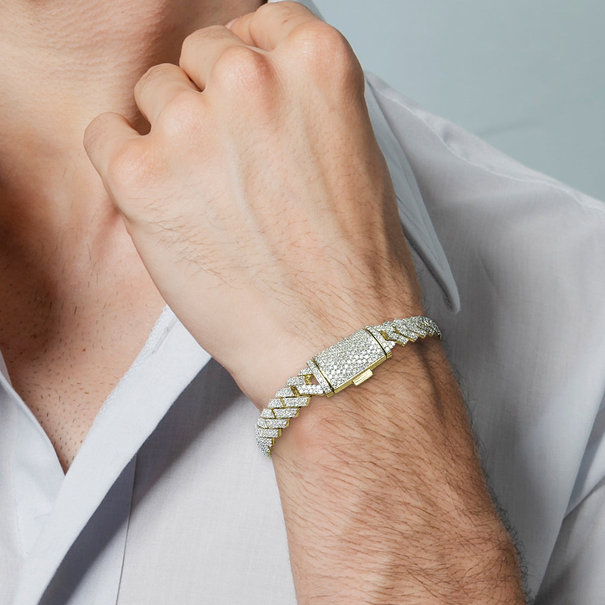 Our Diamond Link Cuban Bracelet is a hallmark of timeless elegance and sophistication. Handmade in 10K Gold and adorned with 5.60 to 6.3 carats of natural diamonds (GH Color / I1 Clarity) depending on length (7 / 7.5 / 8 inches). Classic style with a thickness of 10 mm.
