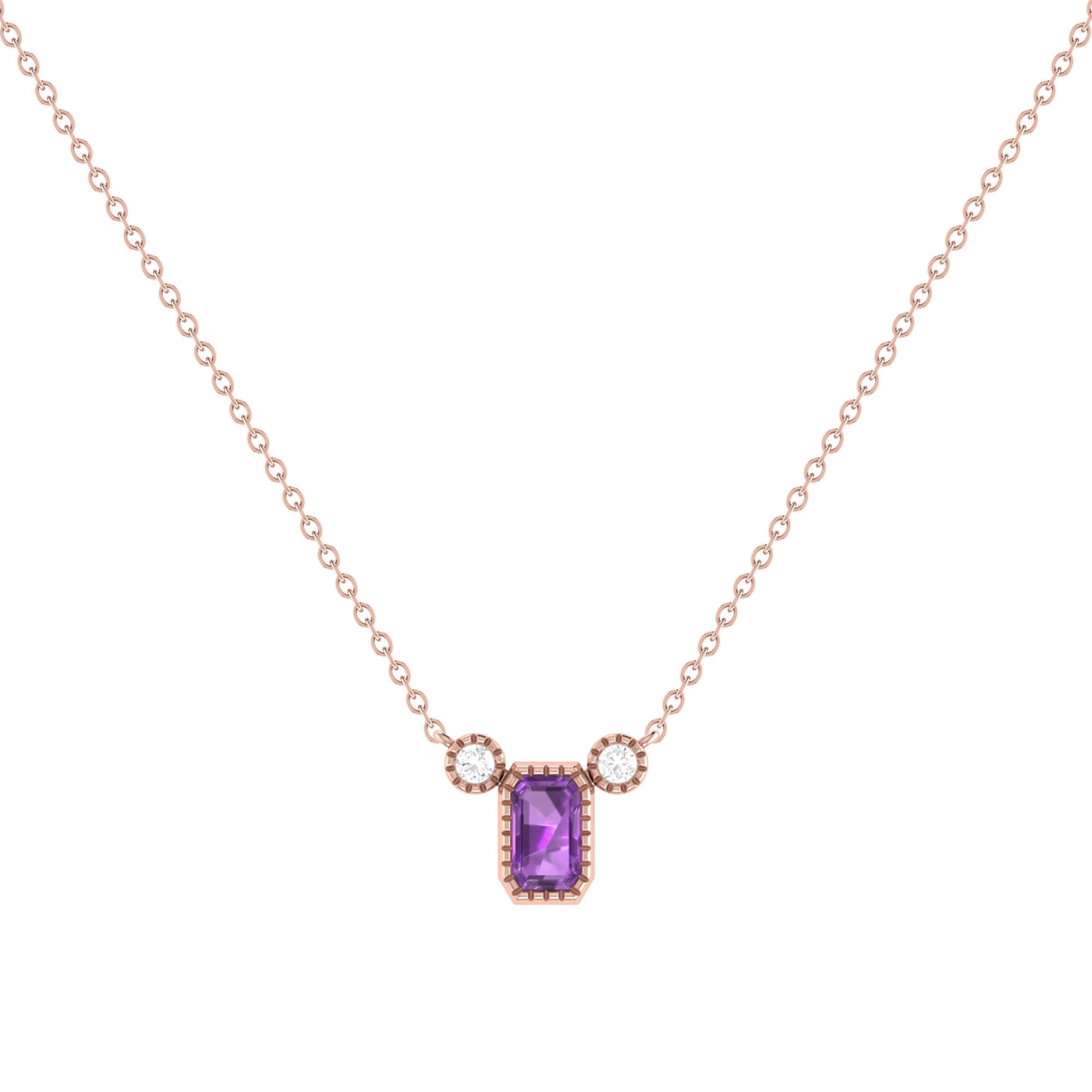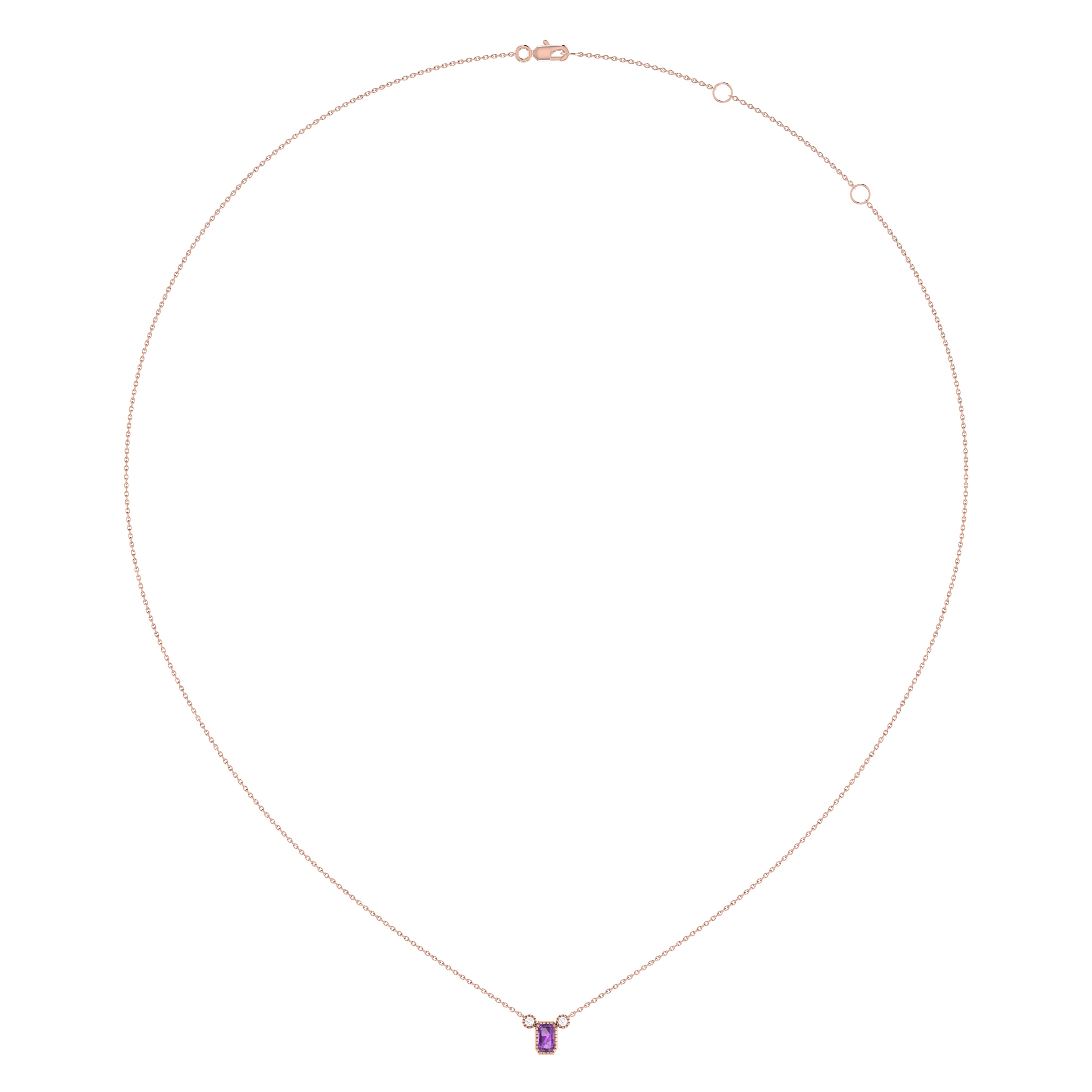 Emerald Cut Amethyst & Diamond Birthstone Necklace In 14K Rose Gold