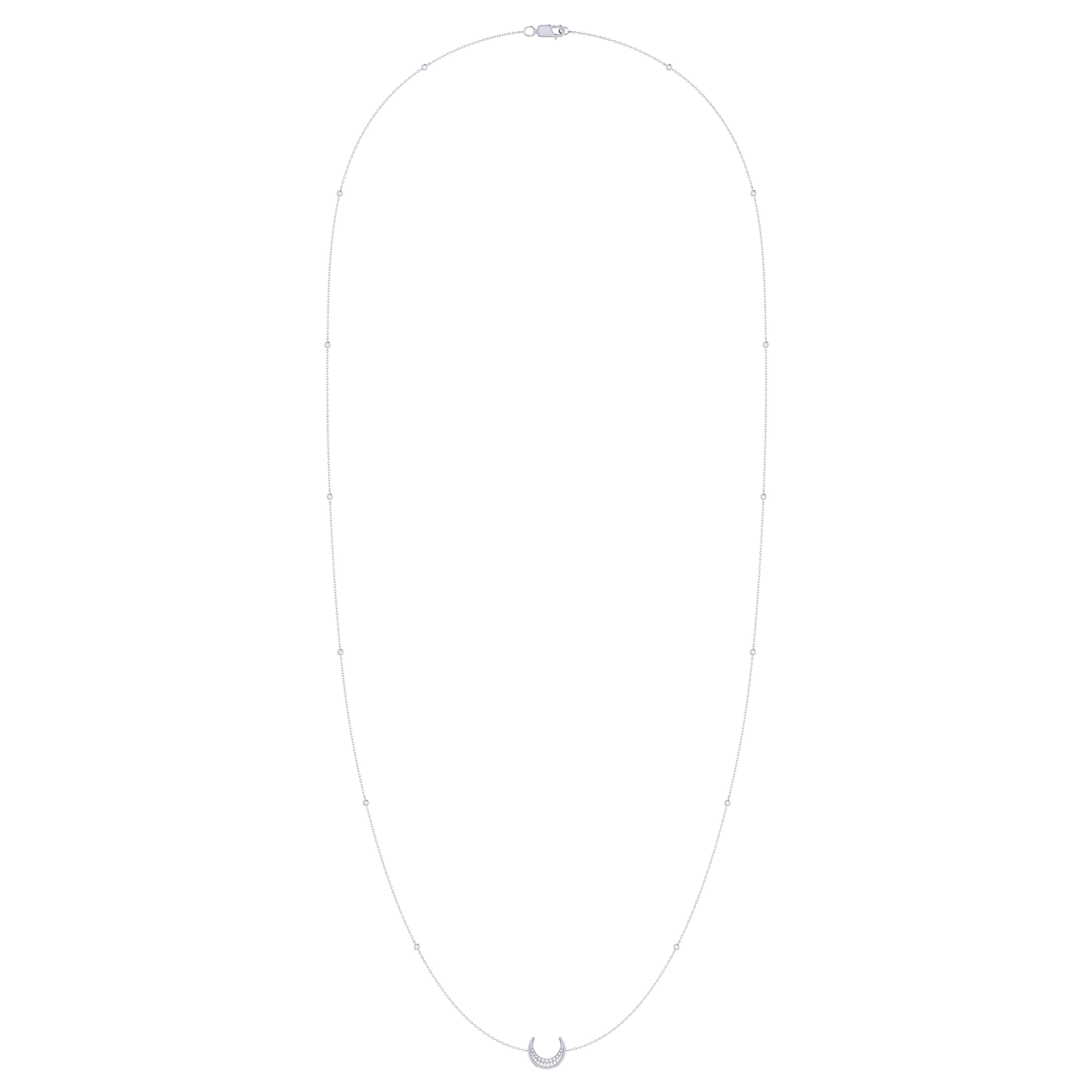 Simple and cute, the Midnight Crescent Layered Diamond Necklace is the perfect touch for a night out. Crafted in 14K White Gold, this necklace features 100% natural, genuine diamonds. 0.16 carats of diamonds are used in individual plate prong and bezel settings. This necklace is 30" long and uses a cable chain with lobster clasp.