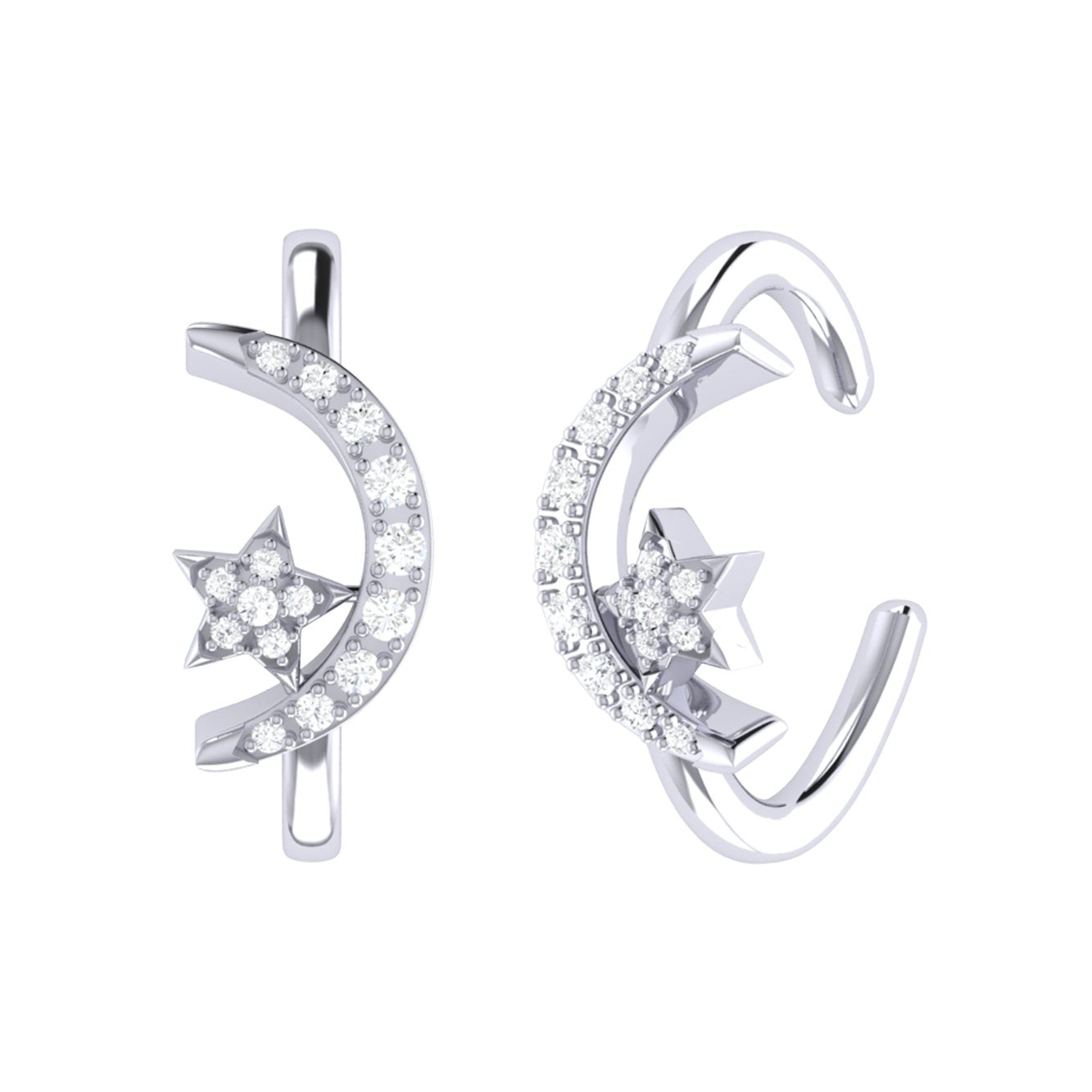 Moonlit Star Diamond Ear Cuffs in Sterling Silver
