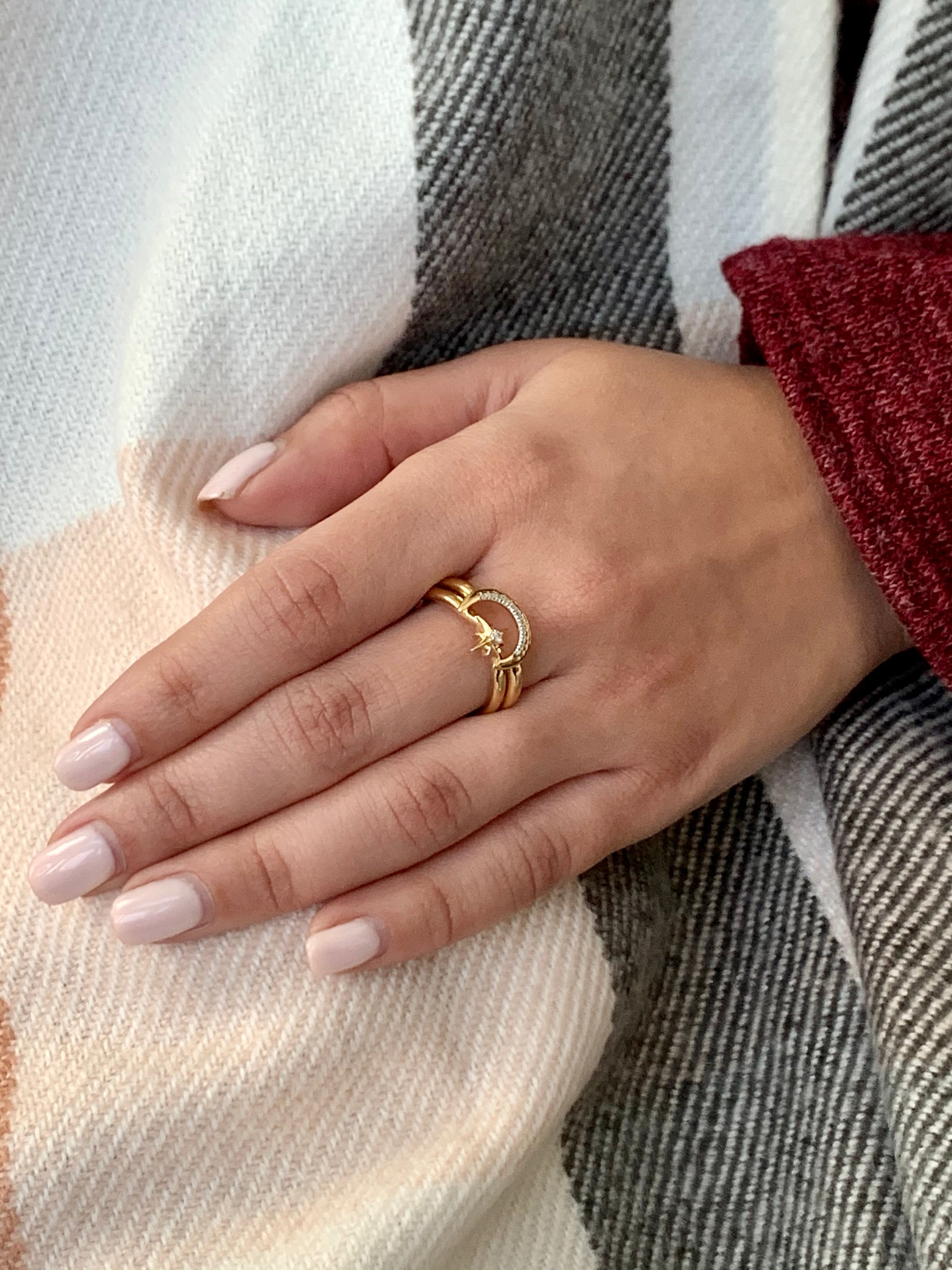 Nighttime Moon Star Lovers Detachable Diamond Ring in 14K Yellow Gold Vermeil on Sterling Silver