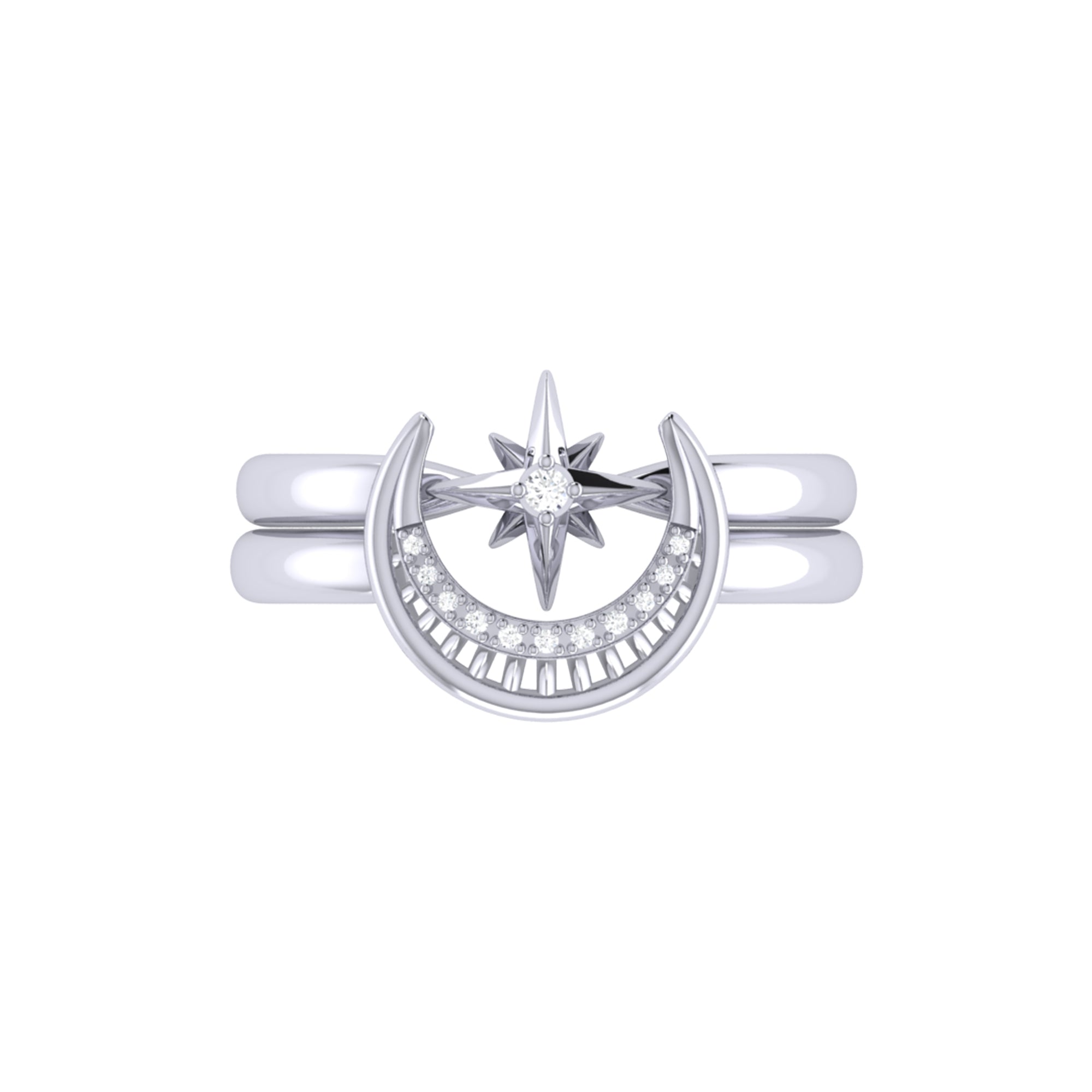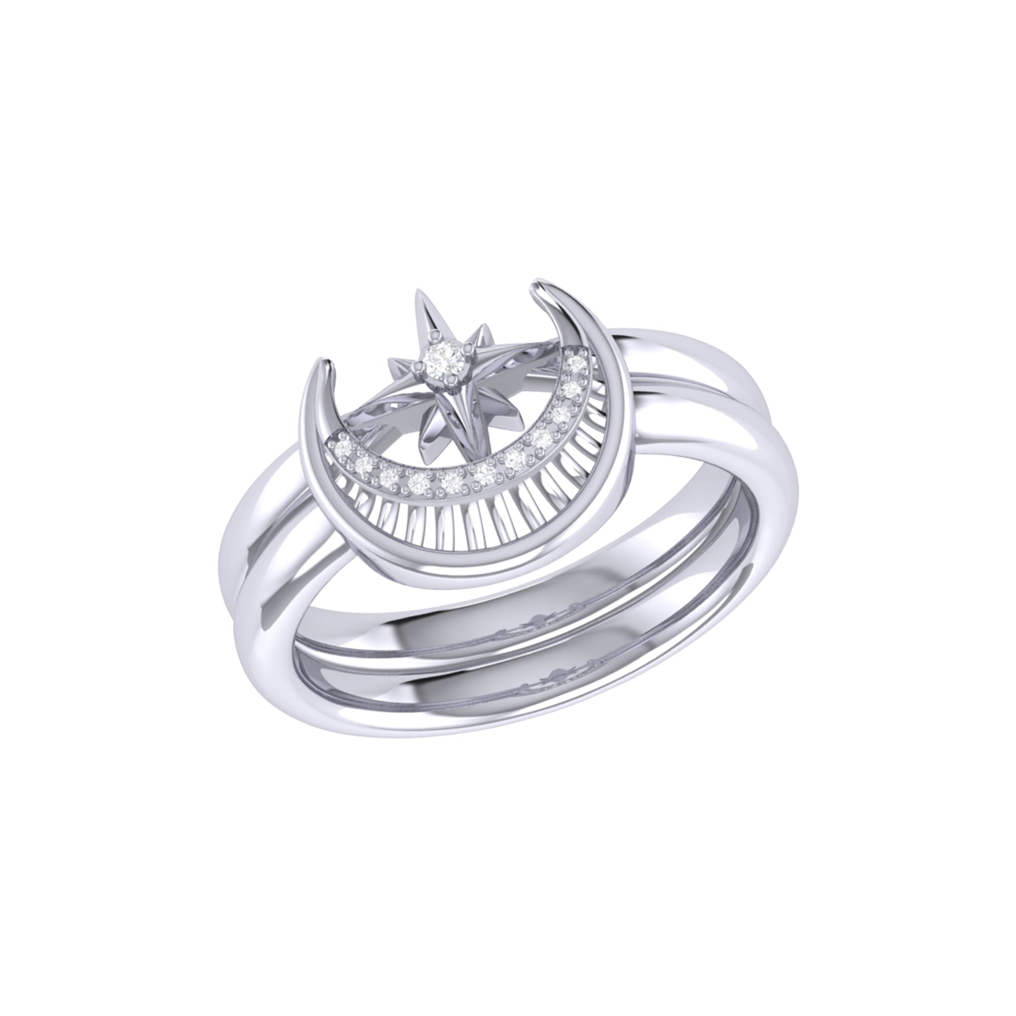 Nighttime Moon Star Lovers Detachable Diamond Ring in Sterling Silver
