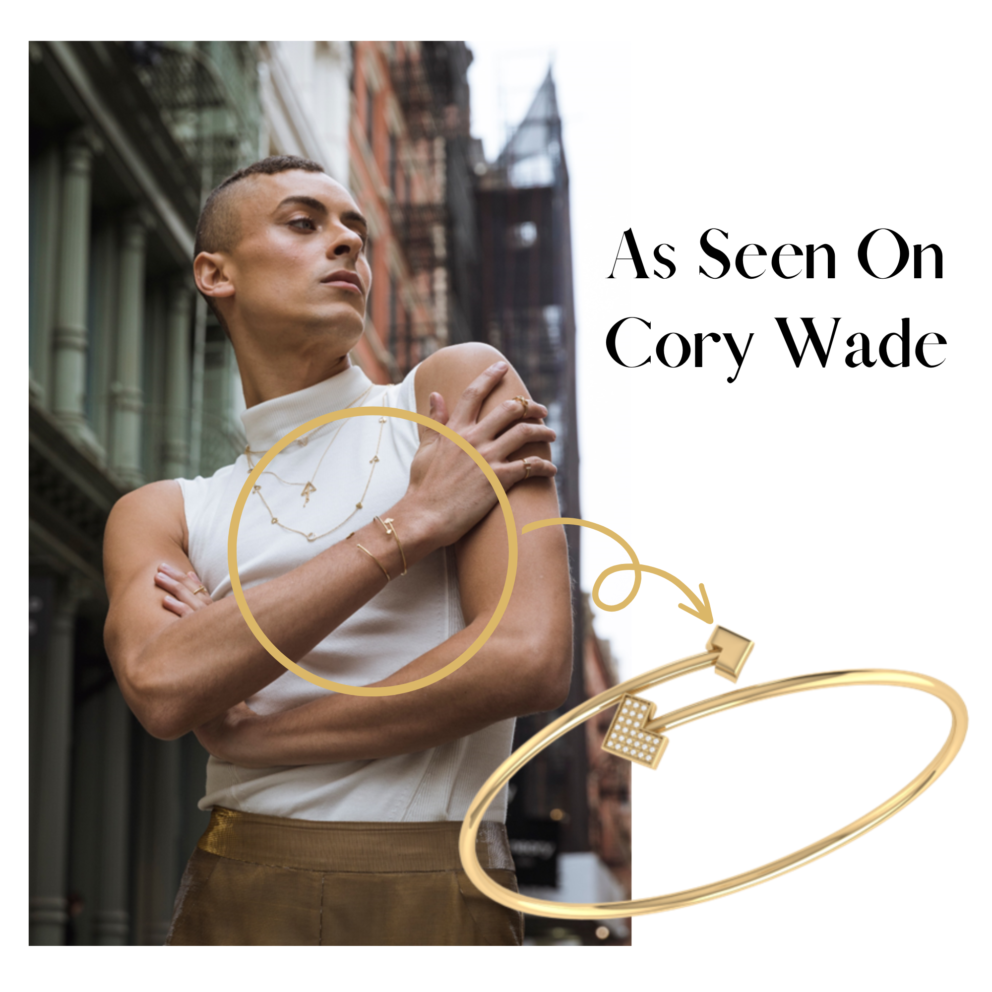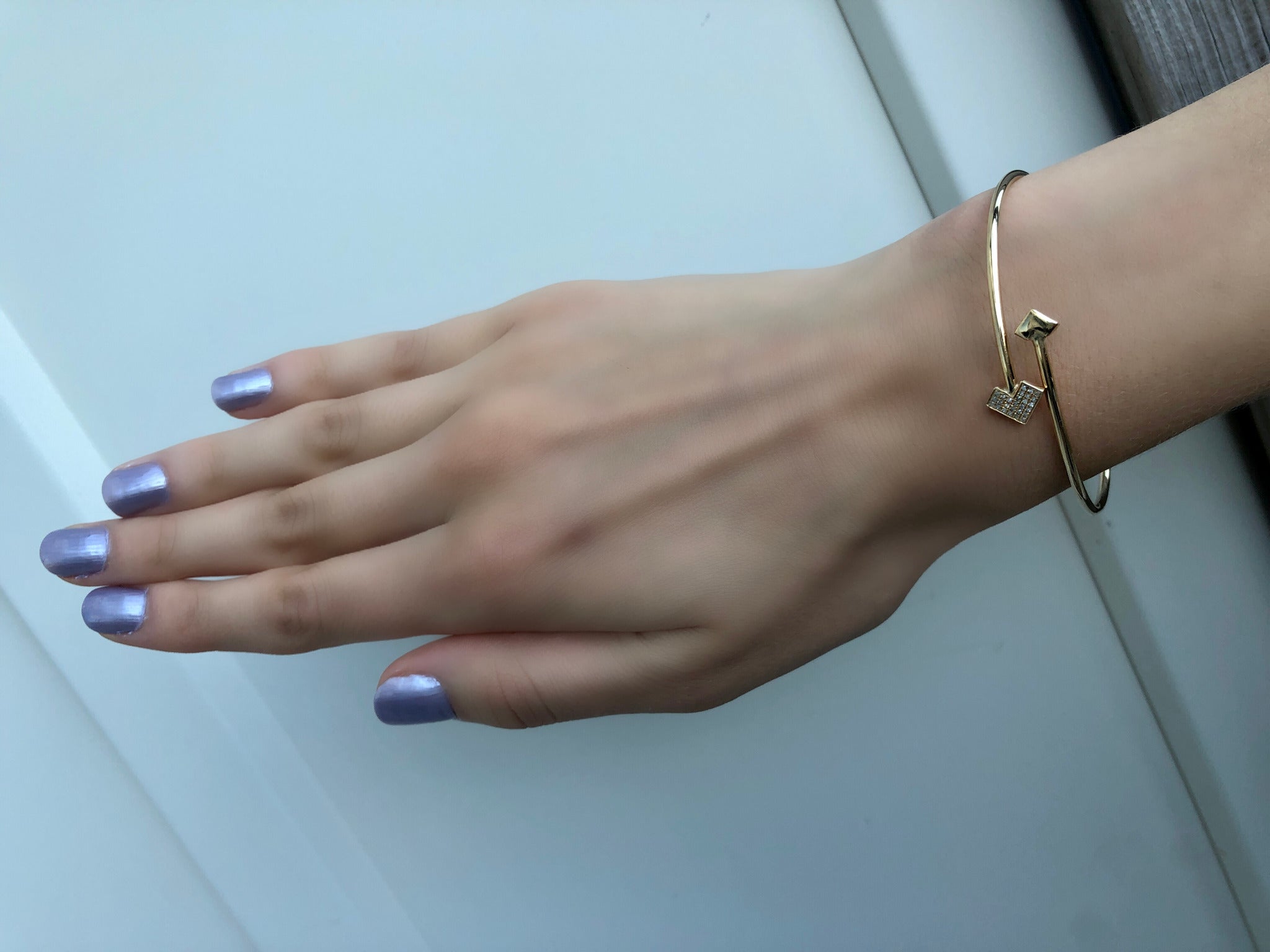 One Way Arrow Adjustable Diamond Bangle in 14K Yellow Gold Vermeil on Sterling Silver