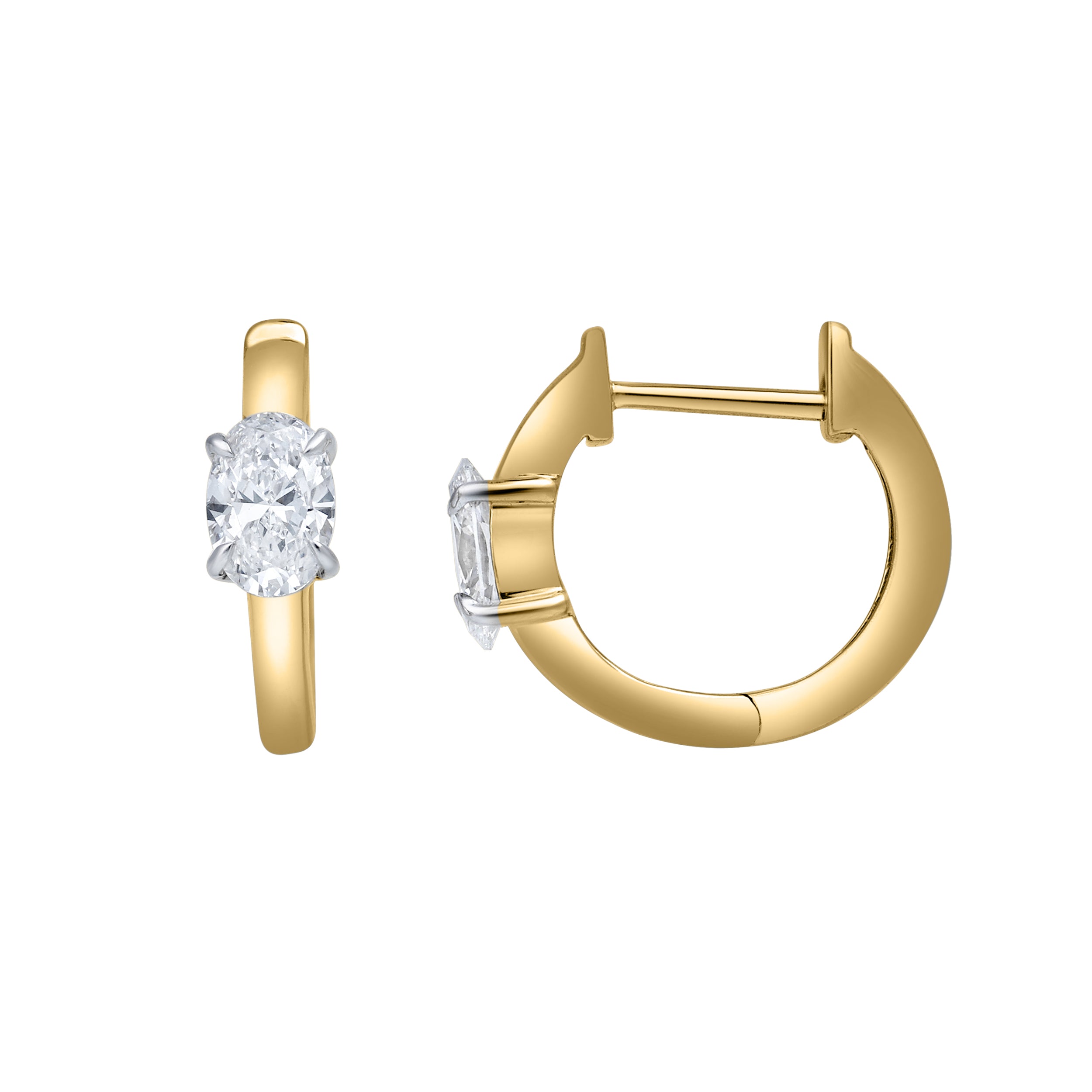 Refined and captivating, the Oval Obsession Huggies feature a total of 0.75 carats of lab grown oval-cut diamonds that radiate brilliance with every movement. Set in polished 14K yellow gold, the elongated symmetry of the oval cut embodies both timeless grace and modern allure.