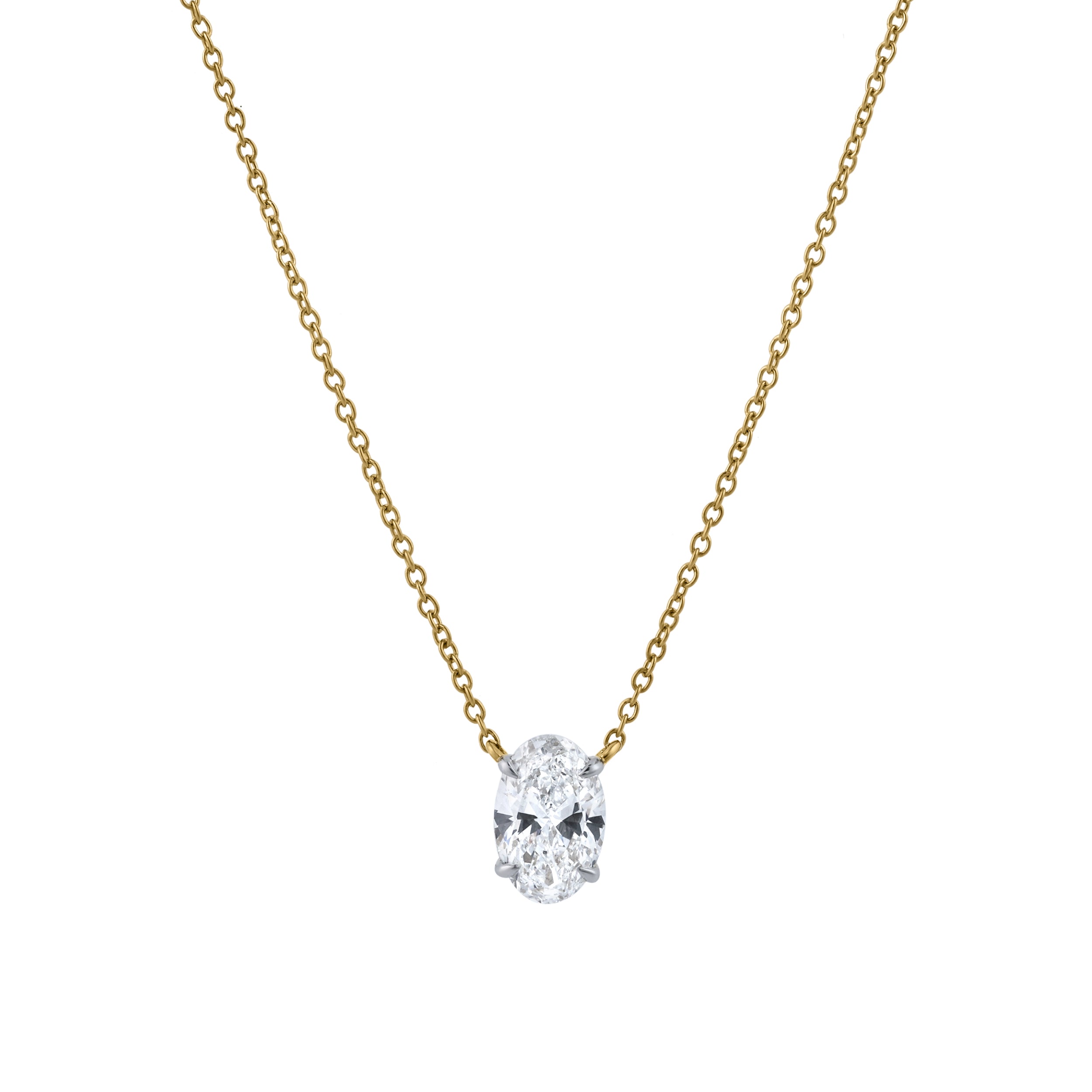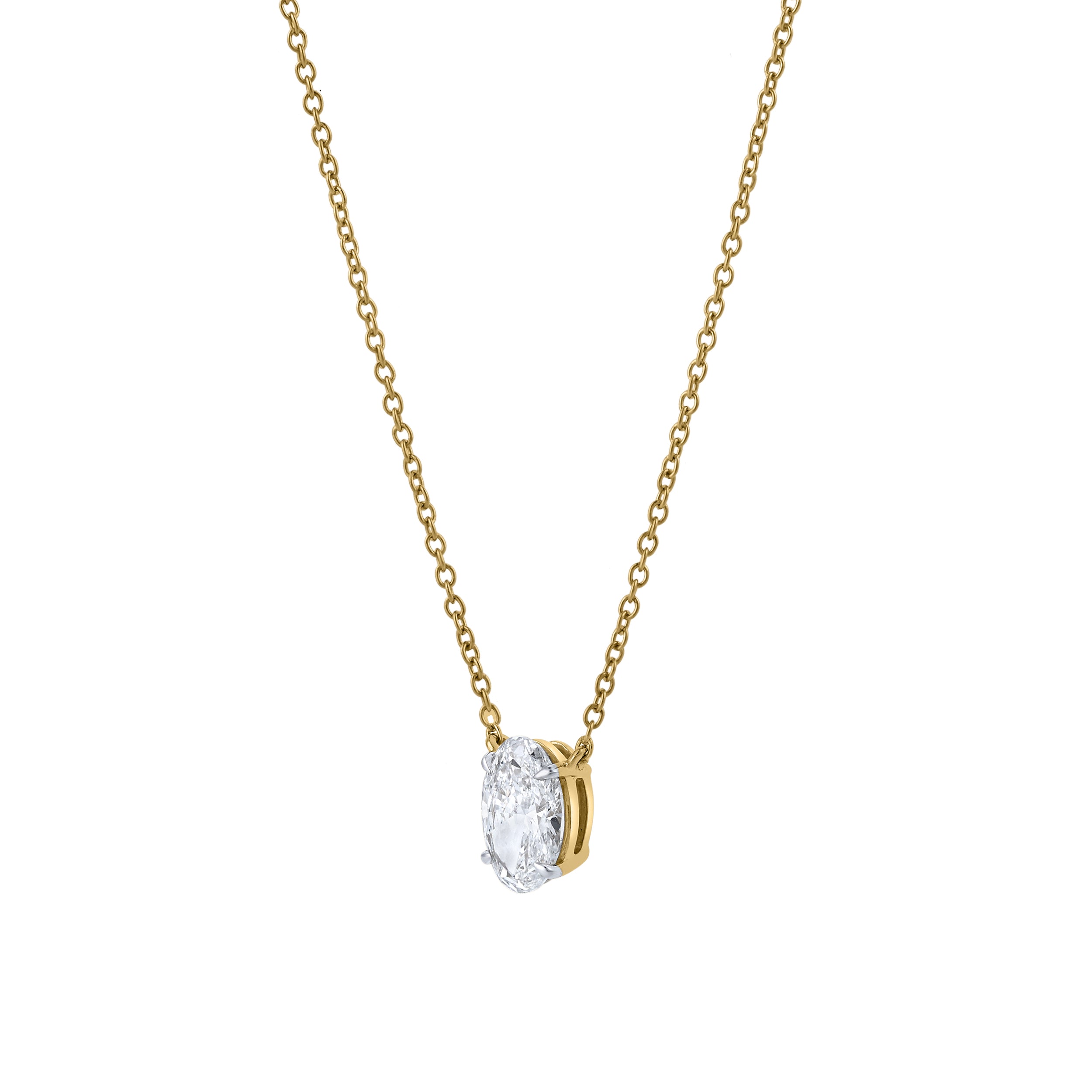 Refined and captivating, the Oval Obsession Necklace showcases a 0.75 carat lab grown oval-cut diamond that exudes brilliance with every movement. Set in polished 14K Yellow gold, the elongated symmetry of the oval cut embodies both timeless grace and contemporary allure.