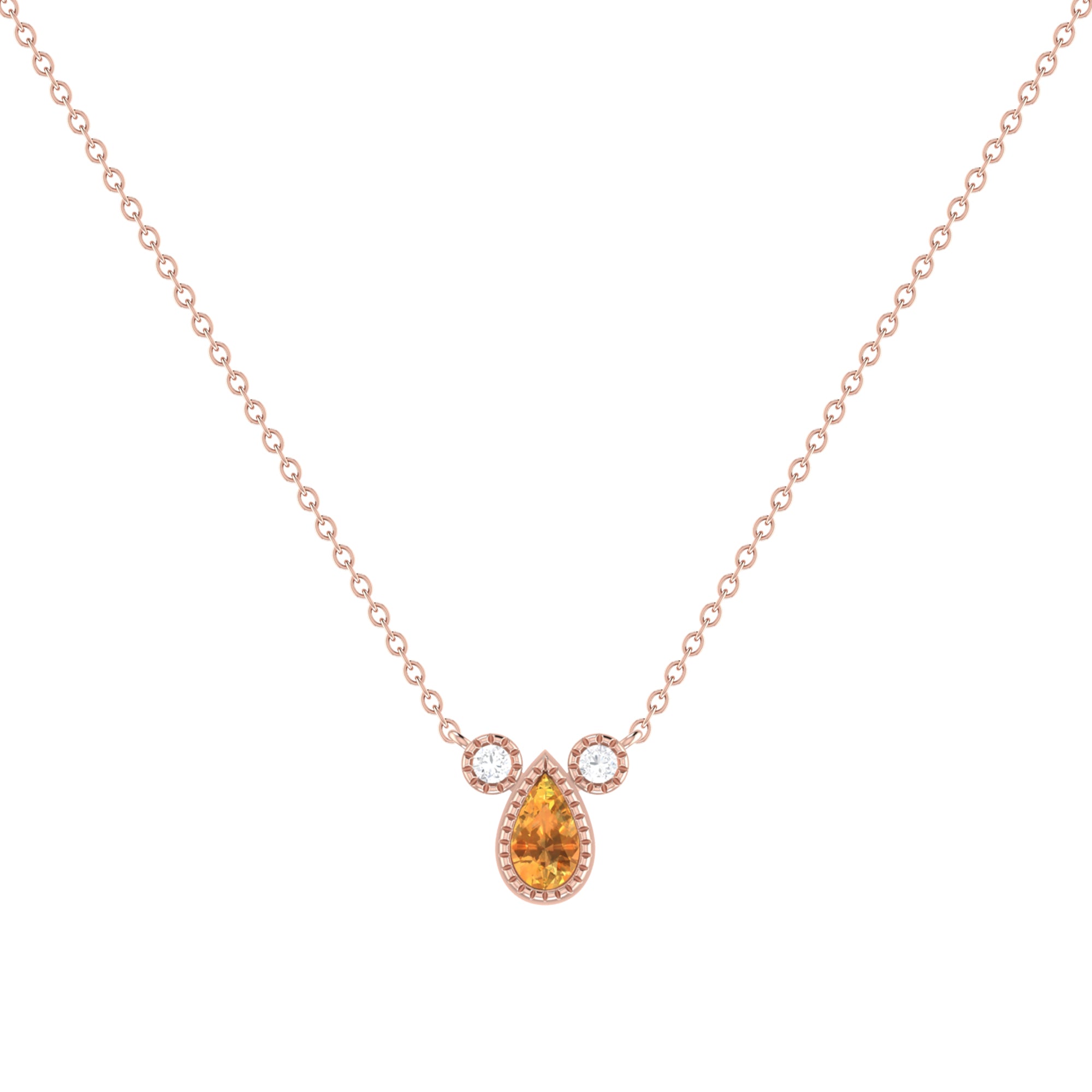 Pear Shaped Citrine & Diamond Birthstone Necklace In 14K Rose Gold