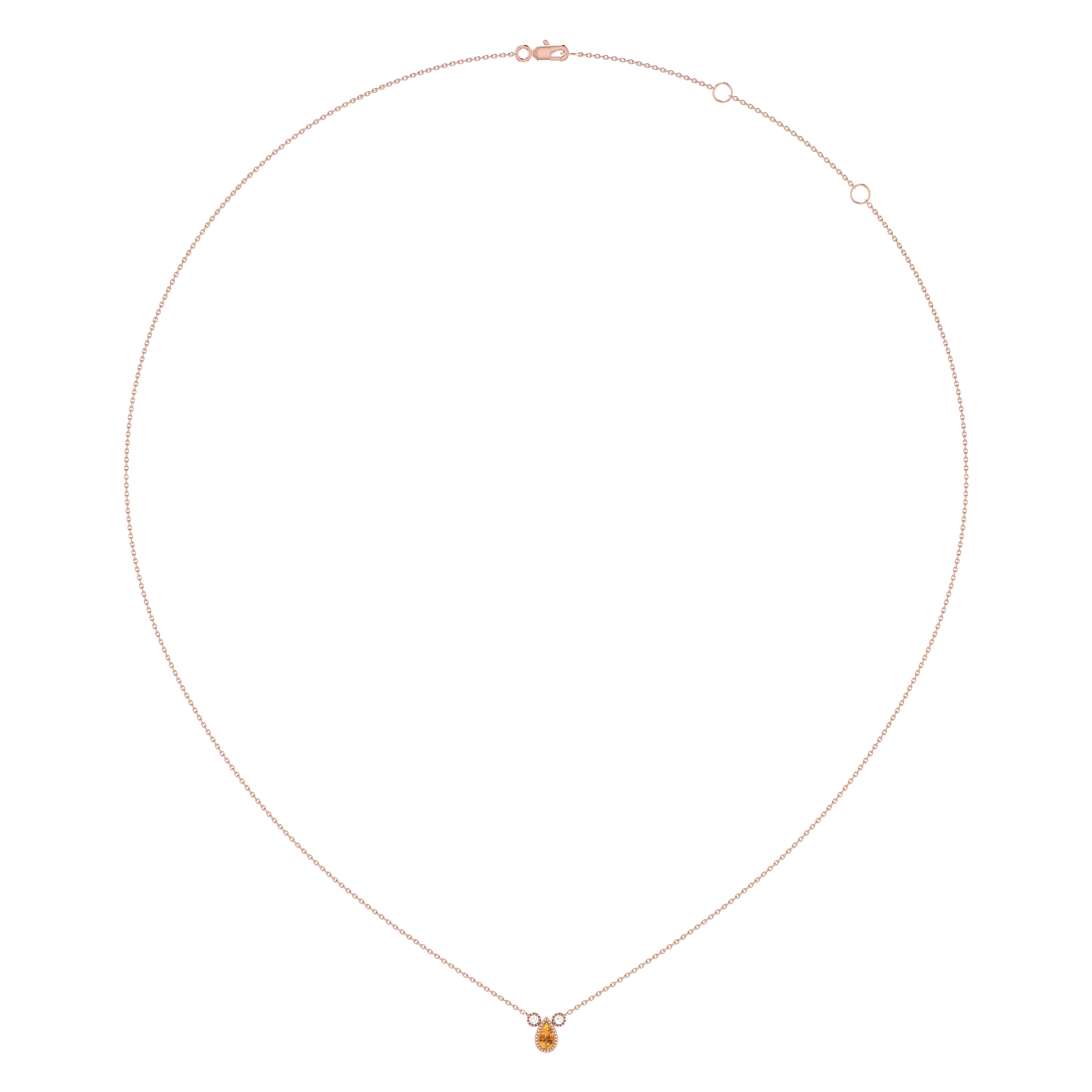 Crafted in 14K Rose Gold, this necklace features a pear shaped citrine gemstone (5 by 3 mm), along with 0.04 carats of genuine, natural diamonds in a bezel setting.