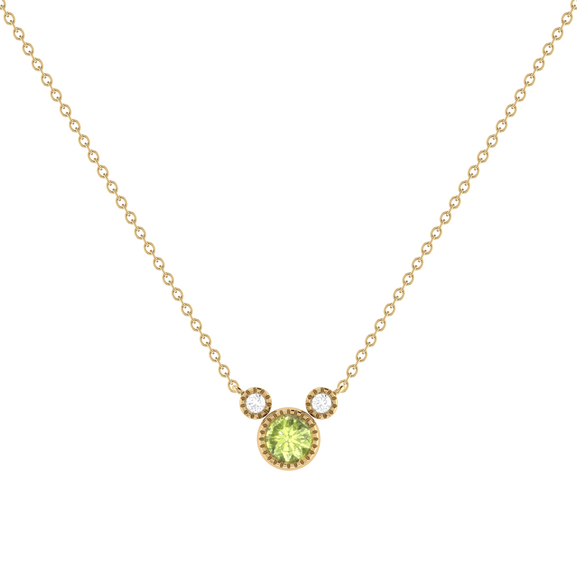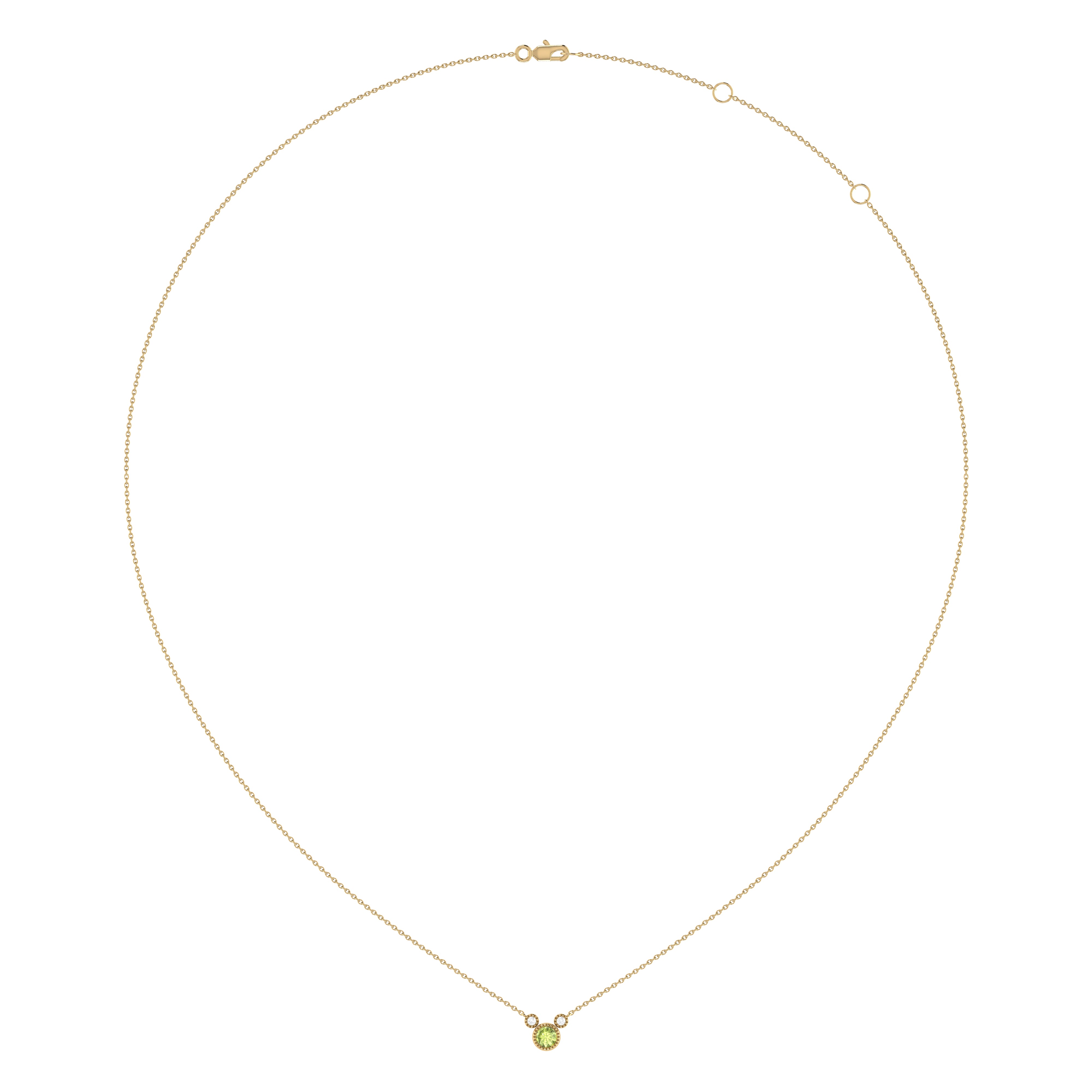 Round Cut Peridot & Diamond Birthstone Necklace In 14K Yellow Gold