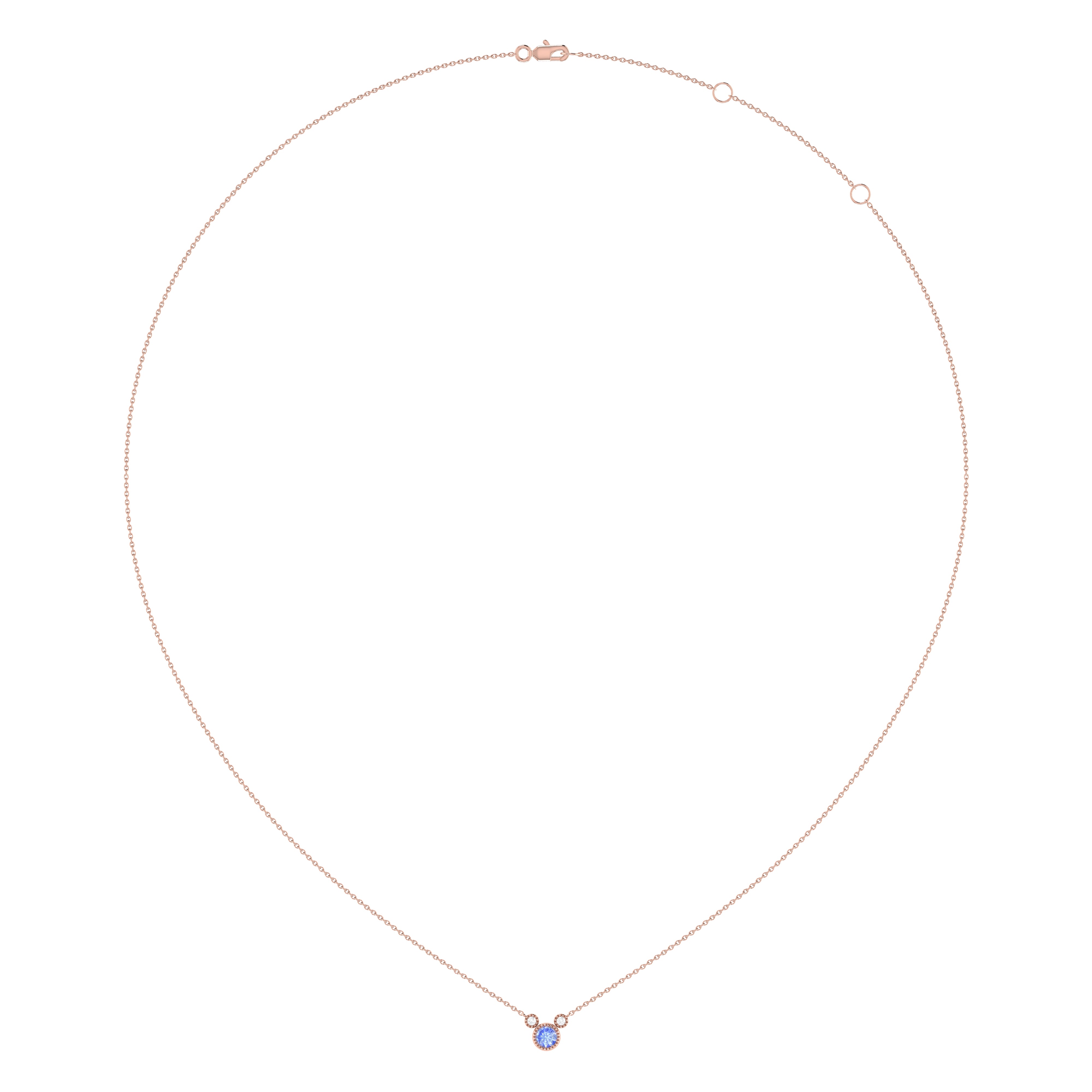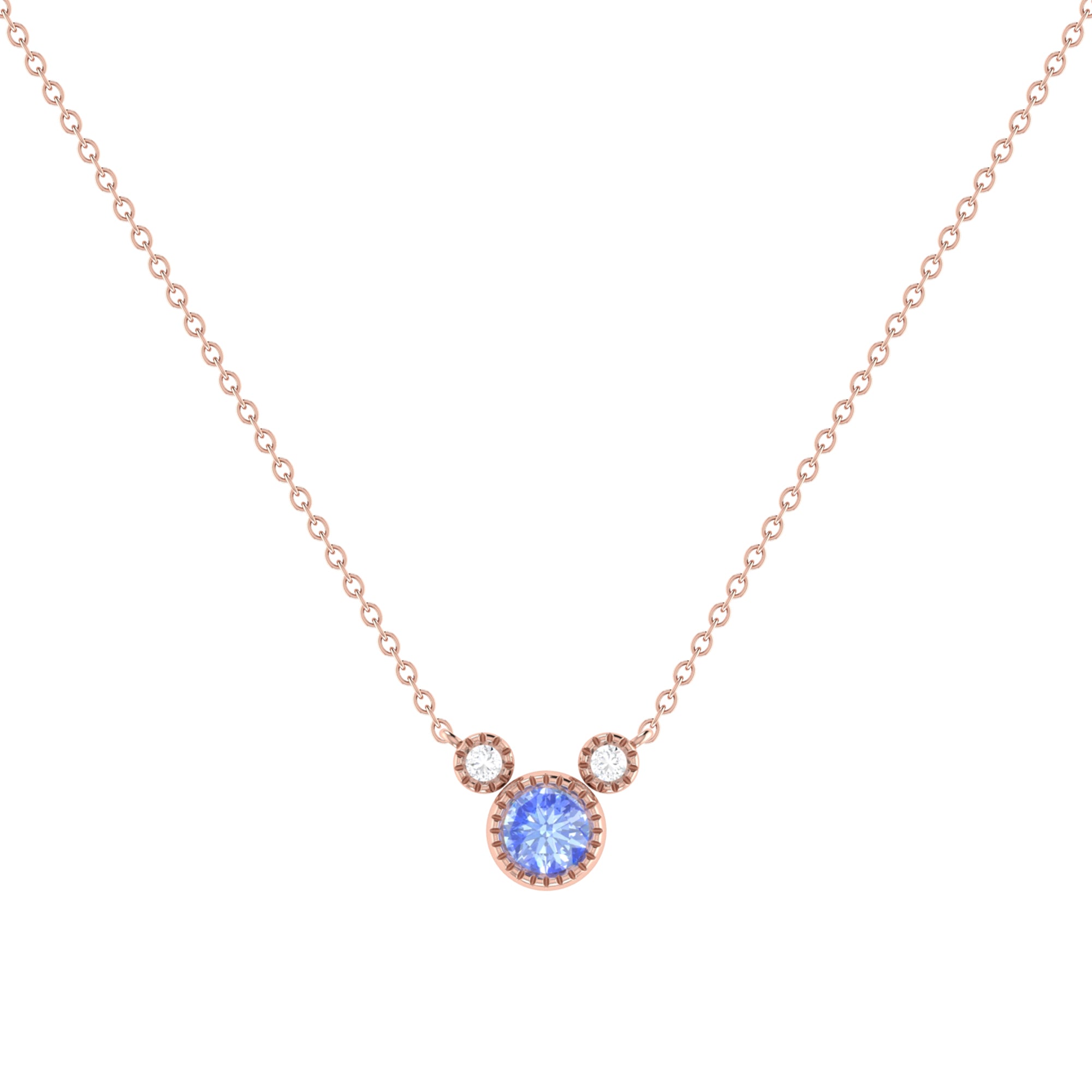 Round Cut Tanzanite & Diamond Birthstone Necklace In 14K Rose Gold