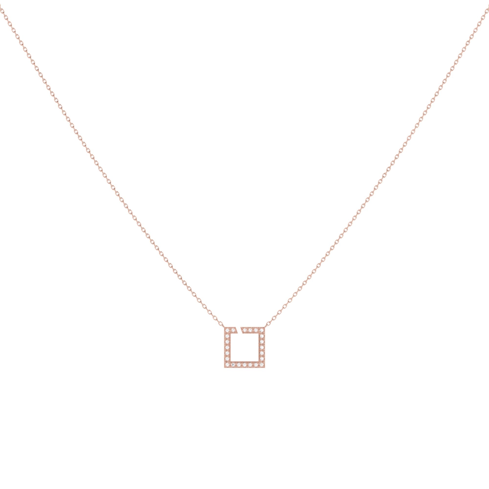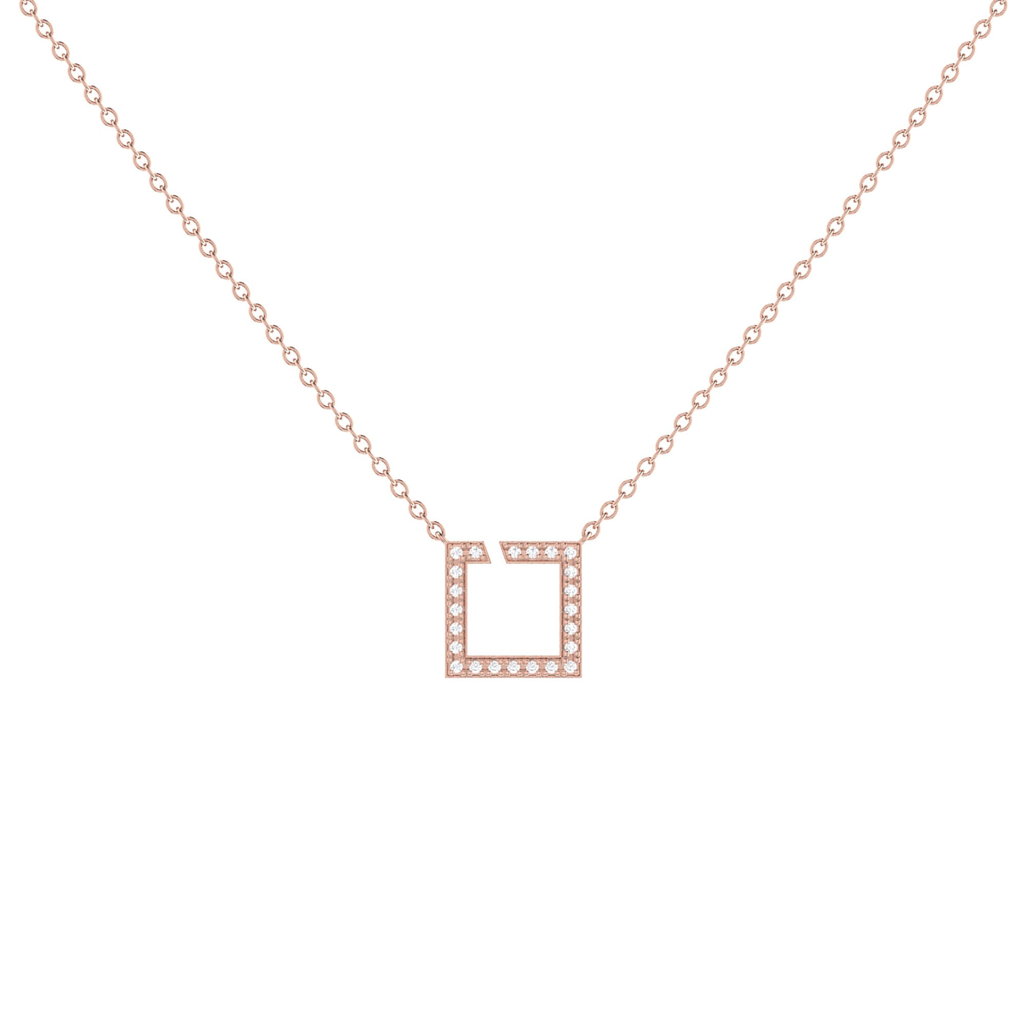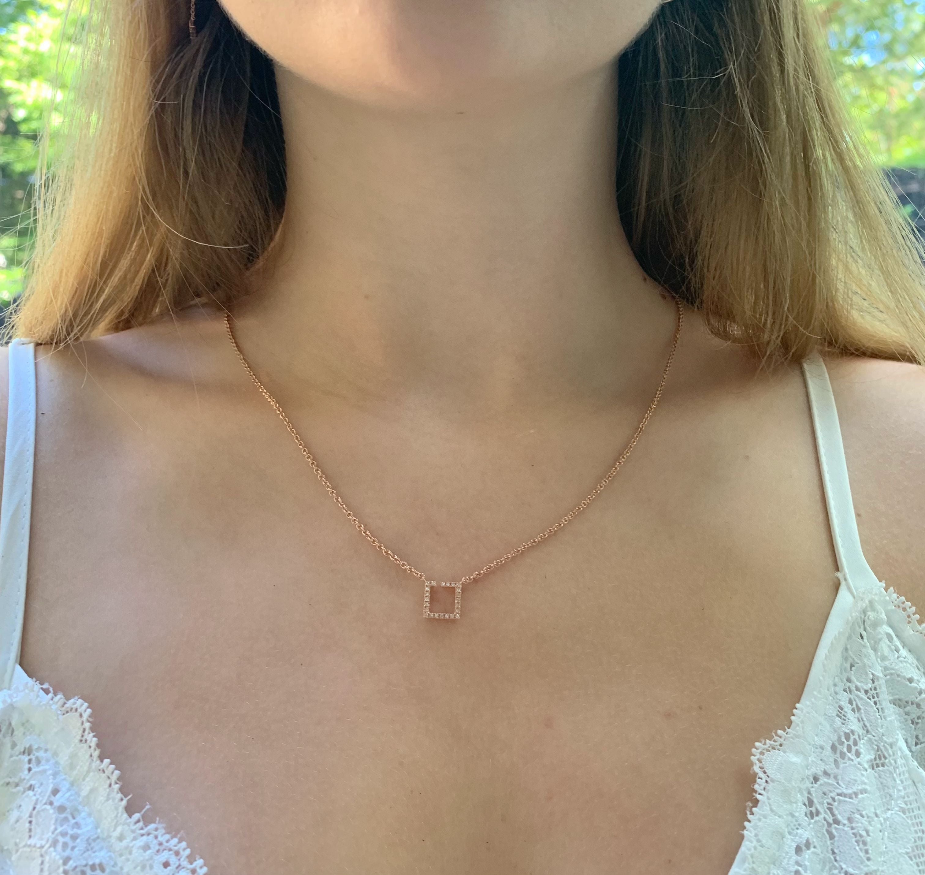 Street Light Diamond Square Necklace in 14K Rose Gold Vermeil on Sterling Silver