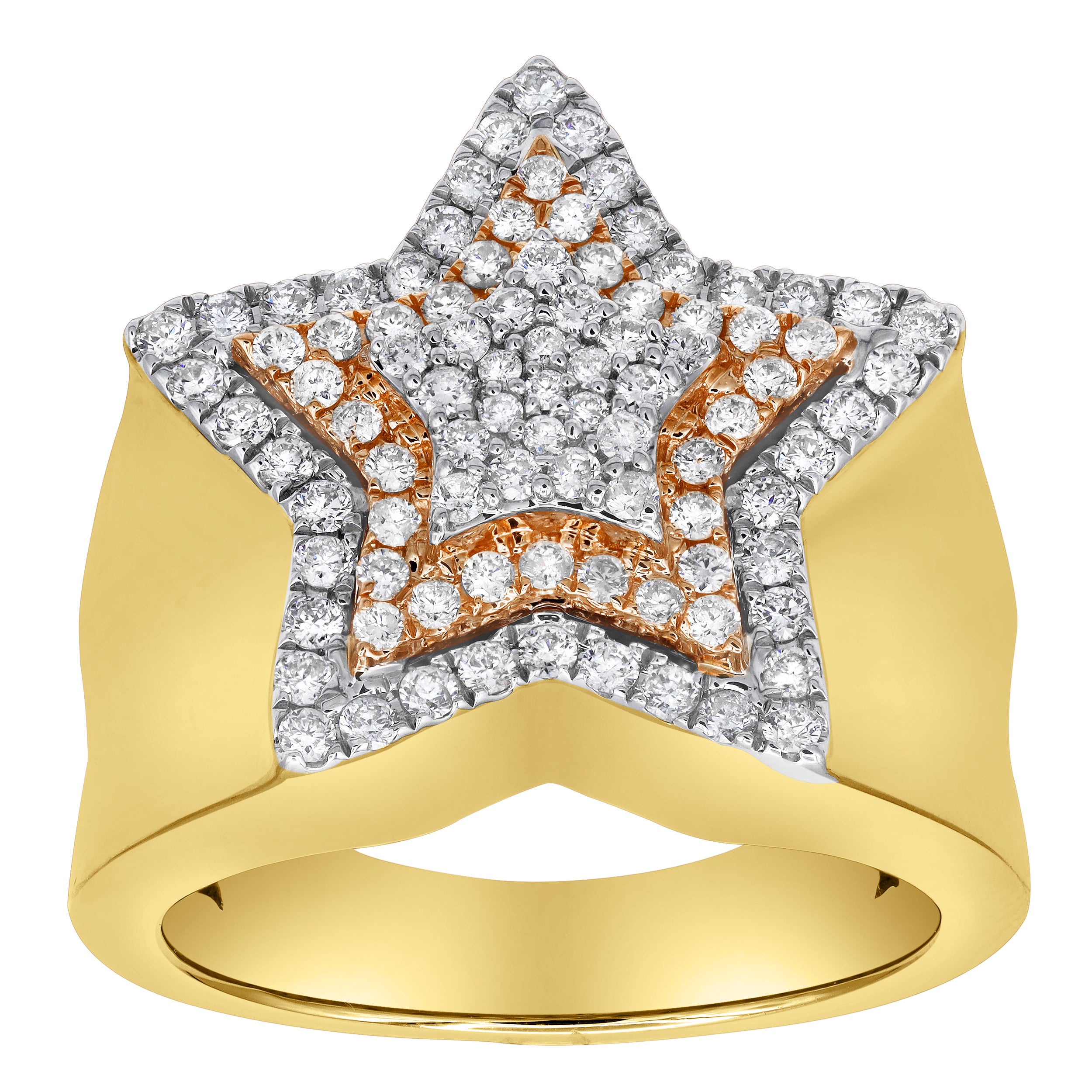 Shine like a star with the MegaStar ring. Featuring 1ct of brilliant diamonds in a classic 14K yellow gold setting. It is the perfect accessory for a stylish and confident look.
