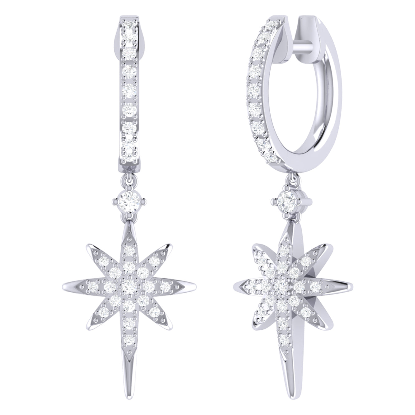 Twinkle Star Diamond Hoop Earrings in Sterling Silver